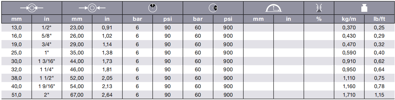 Application: saturated steam and hot water delivery in general industrial applications.